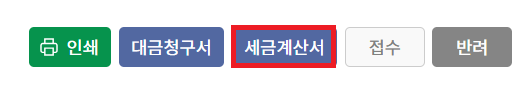 1. 접수 왼쪽에 세금계산서 버튼이 파란색으로 변합니다. 세금계산서 클릭.