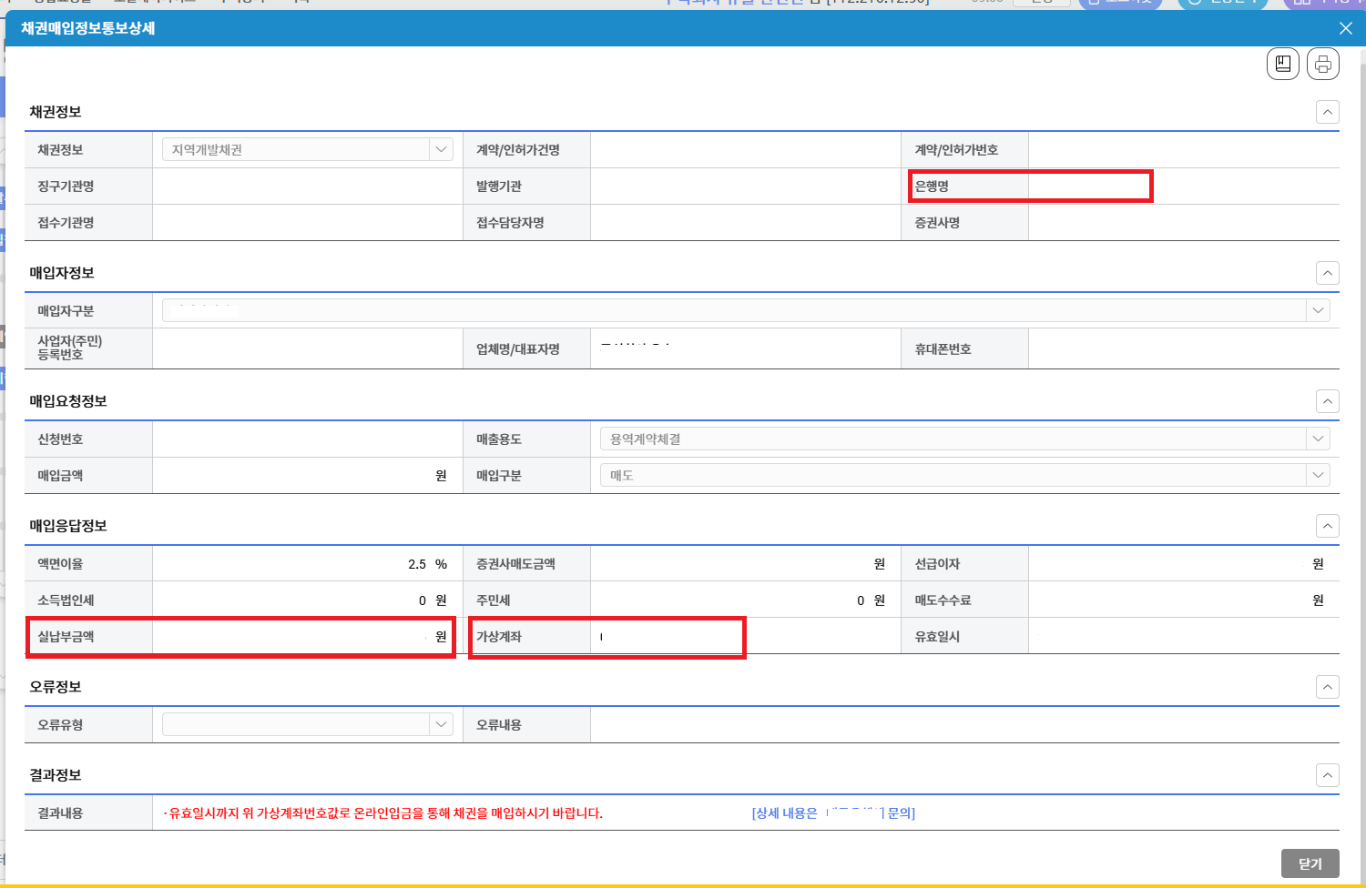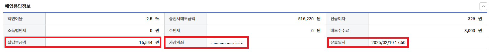 5. 매입응답정보에 보시면 가상계좌 및 이체 되어야하는 금액을 알려주십니다. 보통 신청한 일자로부터 17:50 입니다!