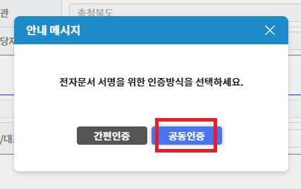 4. 인증방식 선택.(저는 공동인증!으로 진행했습니다) > 채권 정자문서 송신되었다는 안내메시지가 뜹니다. "확인" 클릭.