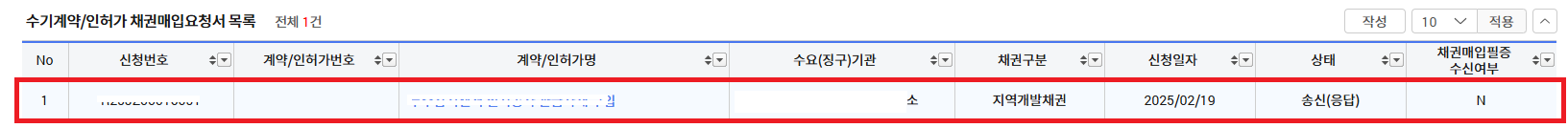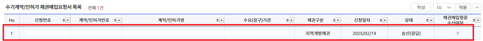 그럼 결재전에 위와 같이 채권매입필증 수신여부 "N"로 표기되어있는대 결재 후 수요기관쪽으로 발송이 되면 "Y"로 바뀝니다.