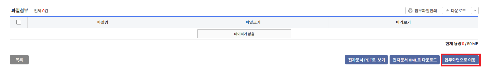 2. 오른쪽 하단에 " 업무화면이동" 클릭 .