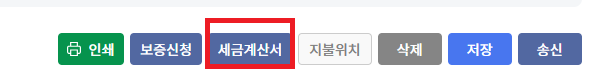 그치만 선금은 세금계산서가 발행되어야 하기 때문에 "세금계산서"클릭하여 계산서발행을 진행해줍니다!