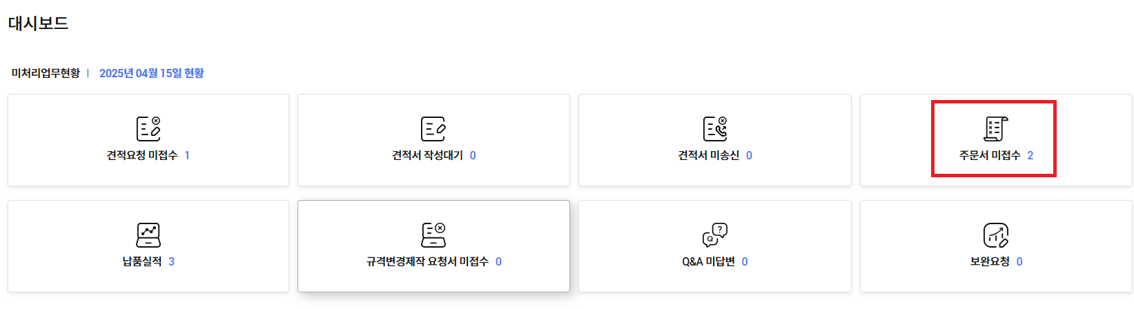 2. 벤처나라 입장되었으면, "마이페이지" > 대시보드에서 "주문서 미접수" 클릭.