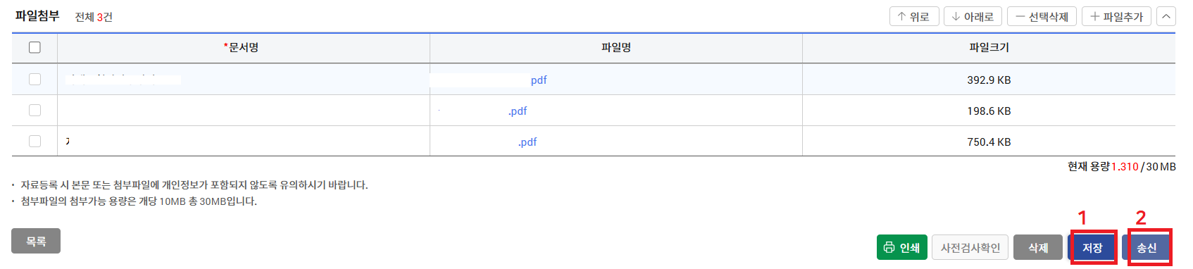 -세번째로,검사검수 요청정보로 들어가 "납품일자" 지정 > 필요서류 첨부 > 저장 > 송신
