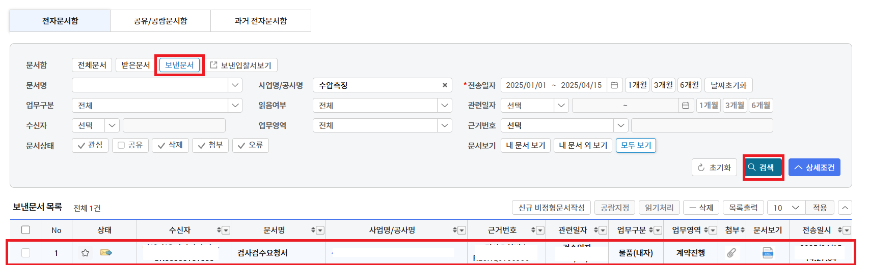 두번째, 나라장터 > 전자문서함 > 보낸문서 클릭 후 검색 하시면 바로보여집니다.