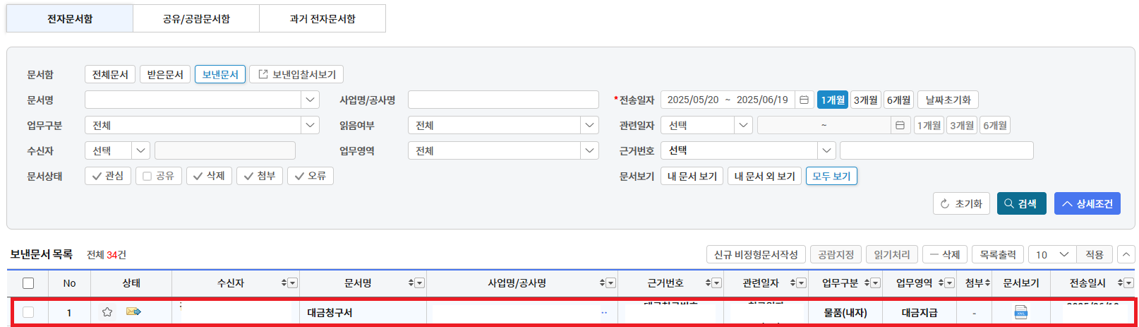자~이제 대금청구가 잘 되었는지 확인해볼까요?