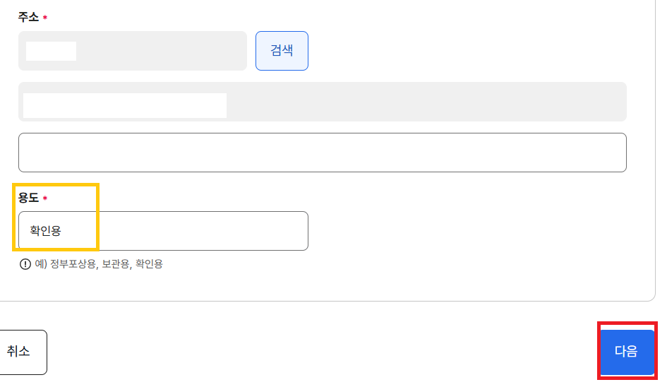-용도 : 필요한 용도 기재