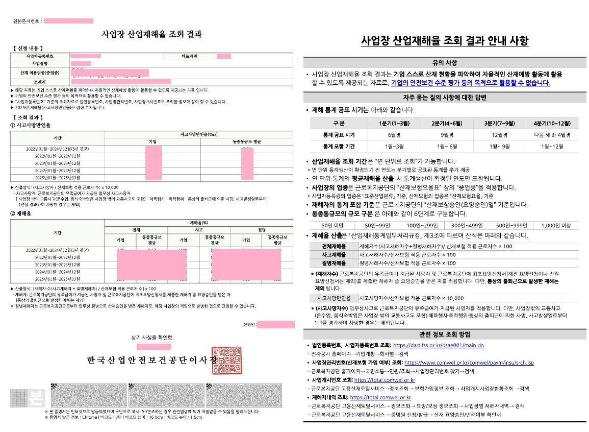 - 산업재해율조회결과발급방법