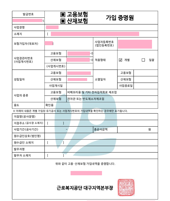 - 산재보험가입증명원