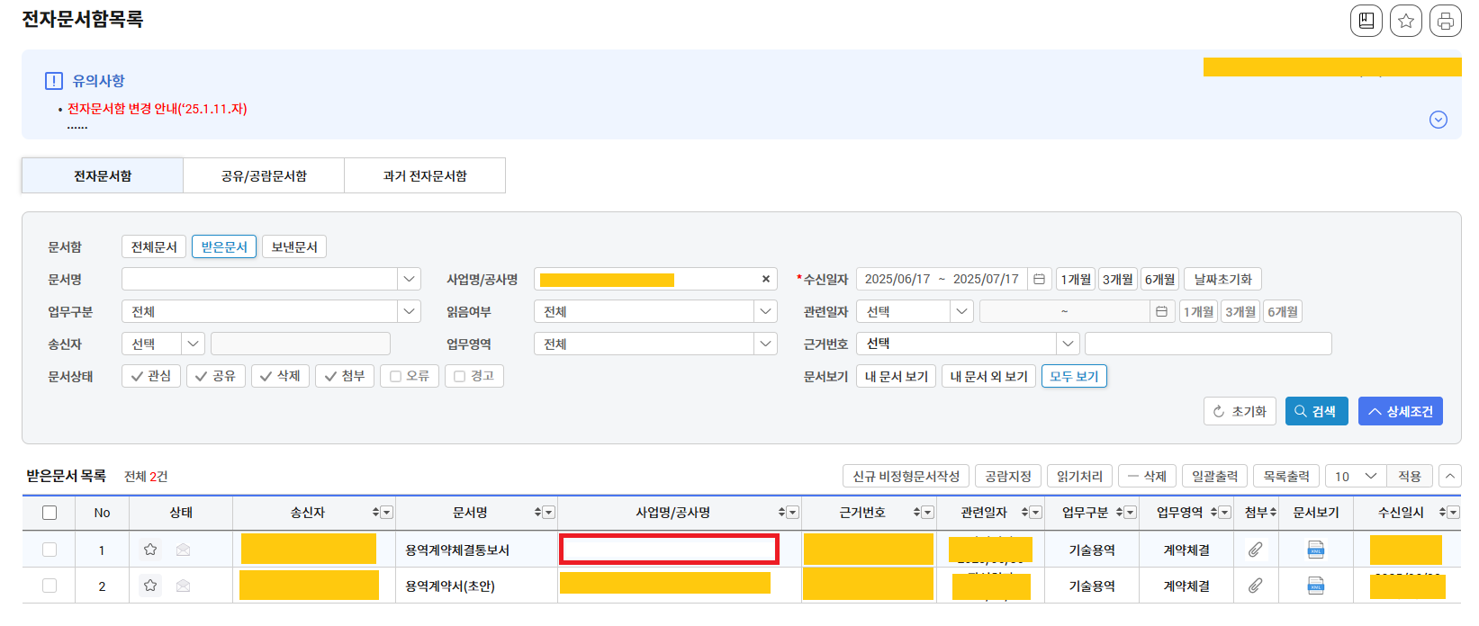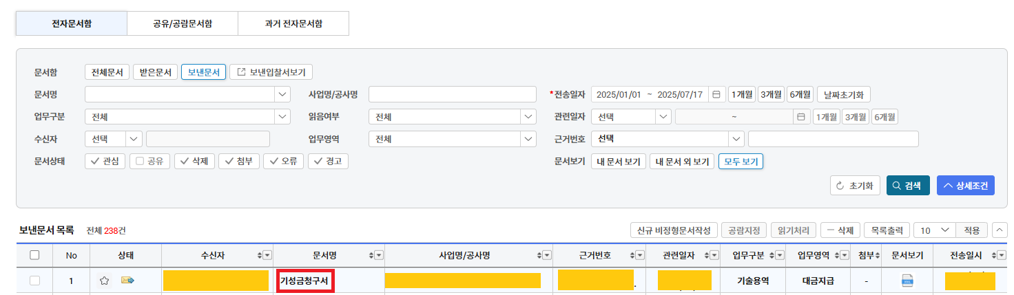 전자문서함에 기성확인서가 들어옵니다. 그럼 다음업무를 진행하실까요~?