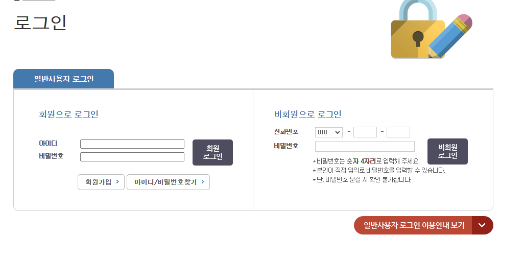 저는 회원이 아니여서 비회원 로그인을 진행하겠습니다.