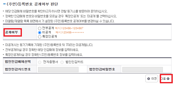 6. 법인번호 공개여부 체크.